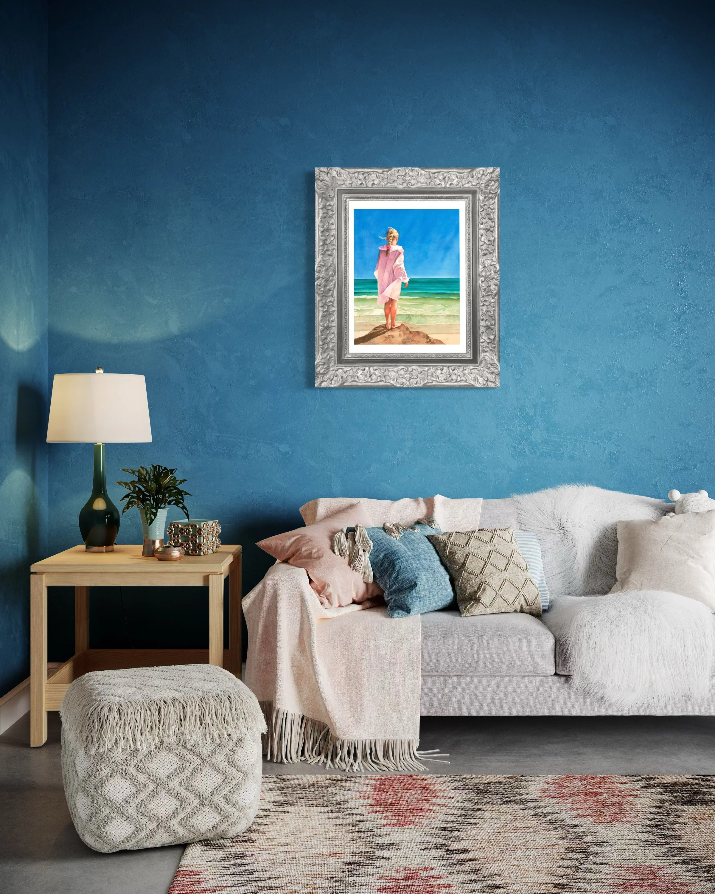 There is a cool and misty breeze blowing off the ocean through the young girl's dress. She can feel the salty air on her face and strands of hair blow in the wind. She feels majestic, proud and pensive as she gazes out into the horizon. Below her lays the world for she is above it all. We have all had moments when nothing bothers us and we feel content and above life.