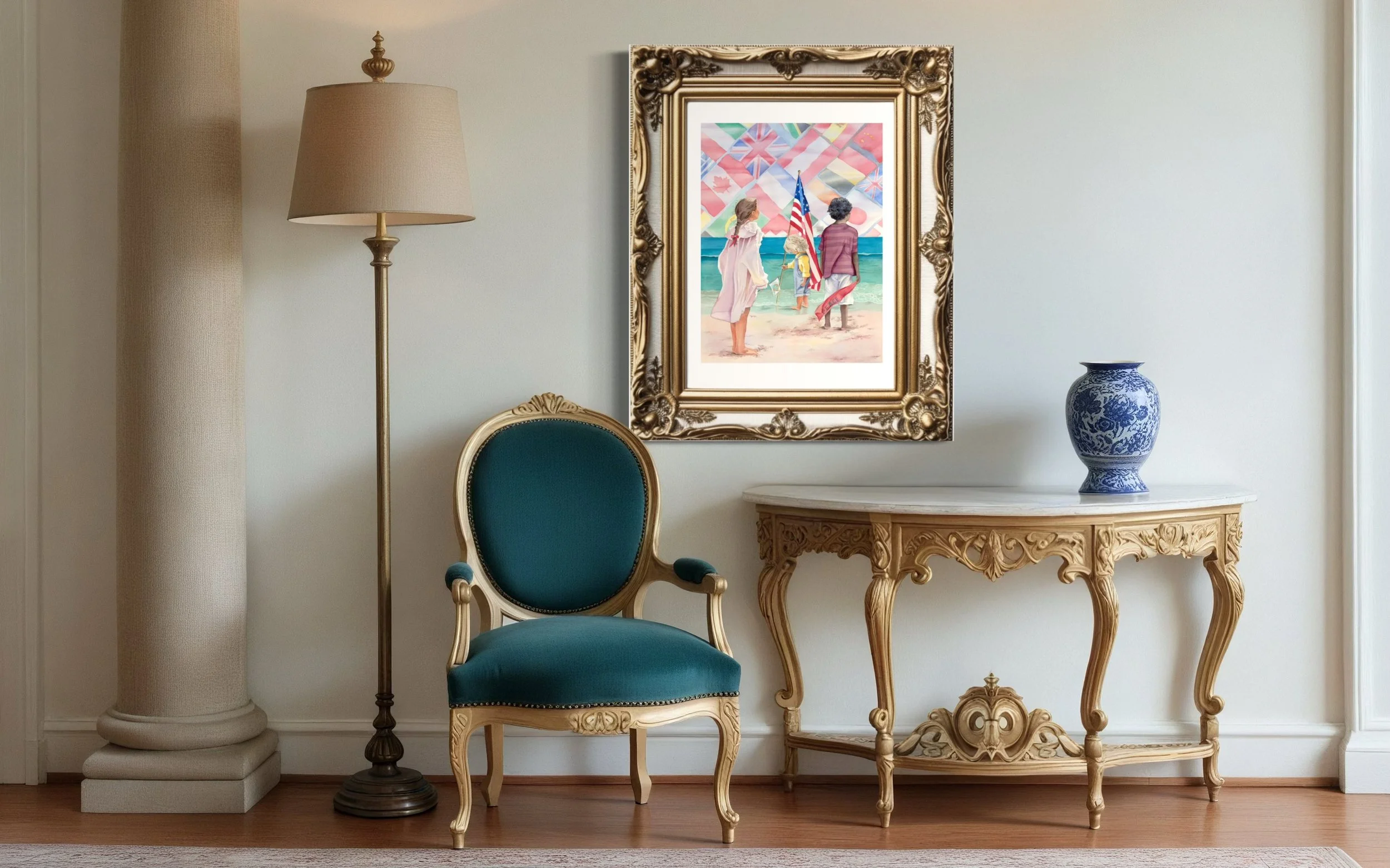 36” x 44” (approximate depending on frame) Hand Embellished Canvas with Hand Picked Vintage Frame to Fit Your Decor: $1,900